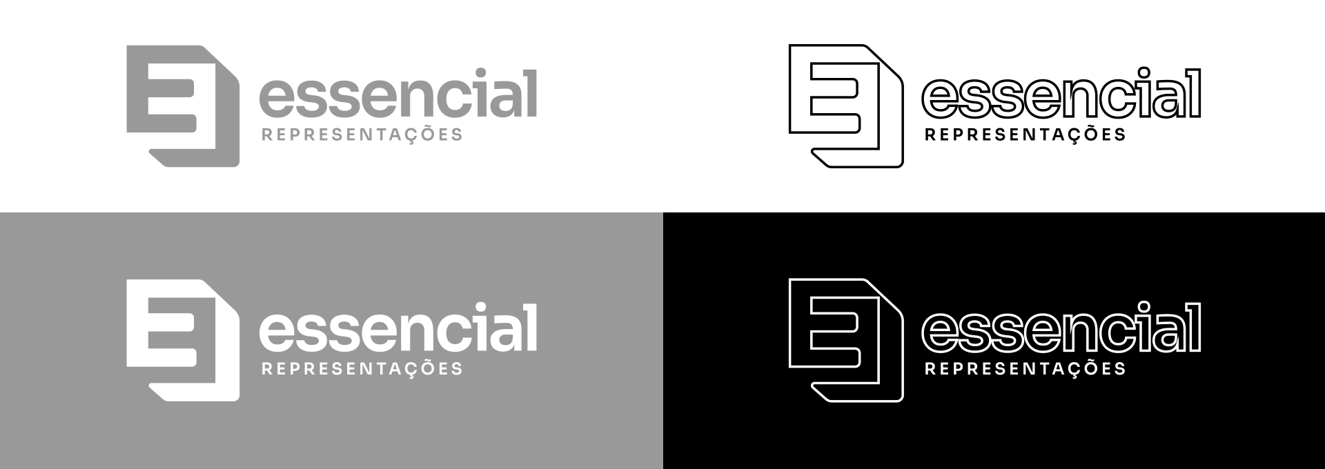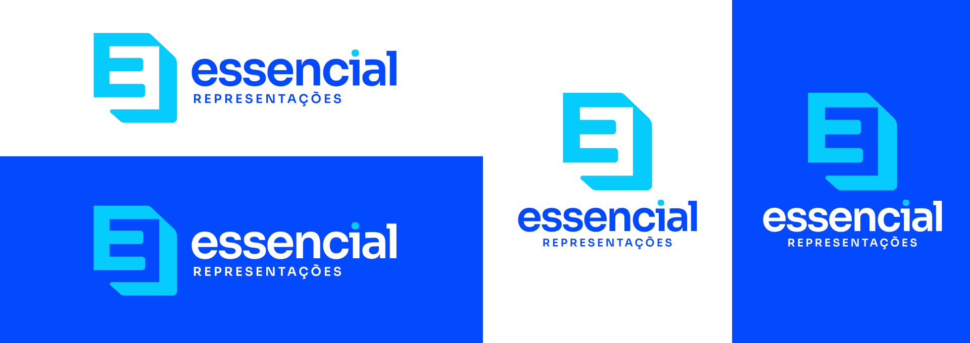 A marca explora o uso de espaço positivo e negativo (Letra E) para simbolizar a sinergia entre a empresa e o cliente, reforçando o compromisso com a inovação e a superação de desafios para alcançar resultados de excelência.